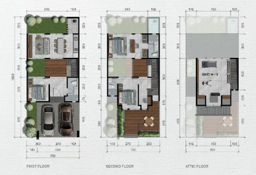 Konsep ruang tamu dan ruang makan yang menyatu menghadirkan keuntungan berupa area kebersamaan yang luas dan fleksibel untuk berbagai aktivitas keluarga. Ditambah attic room multifungsi, penghuni memiliki ruang ekstra yang dapat dimanfaatkan sebagai ruang kerja, ruang hobi, home gym, atau ruang bermain anak sesuai kebutuhan.